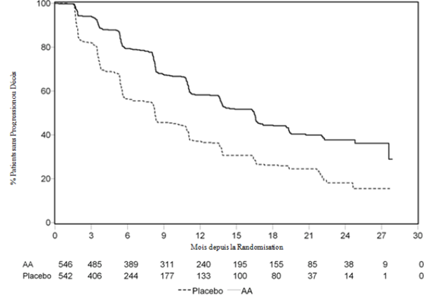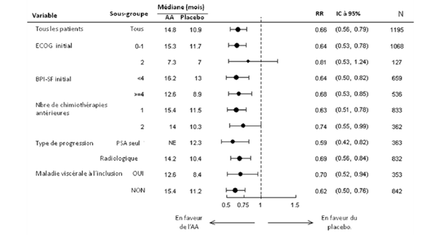 Des taux de réponse plus faibles peuvent être attendus chez les patients qui ont été traités précédemment par du kétoconazole pour leur cancer de la prostate.
