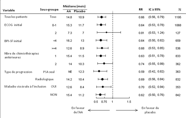 Des taux de réponse plus faibles peuvent être attendus chez les patients traités précédemment par kétoconazole pour un cancer de la prostate.